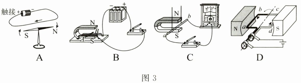 7. 在钦州港的全自动智能化码头,自动导引车经过布置在地上的磁钉时会产生感应电流,进而实现精准定位。图 3 实验中能揭示此原理的是(