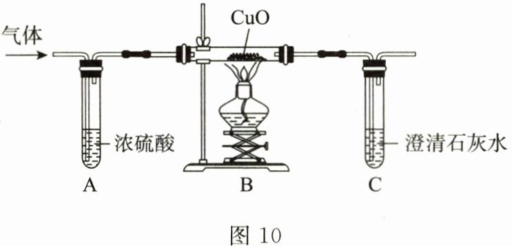 (1)取几袋完好的“炸包”,剪开包装,将其中的固体和液体混合。将产生的气体用于图10所示的装置进行实验。实验过程中,观察到B装置内没有明显现象,而C装置中