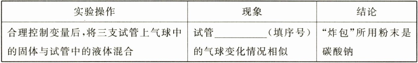 (2)钠 【进行实验2】气球所盛固体粉末的质量 所用试管的容积和气球的规格(合理即可)