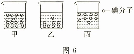 (2)甲、乙、丙三名同学分别画出图 6 所示的示意图,表示溶液中碘分子的分布情况(汽油分子未画出)。
