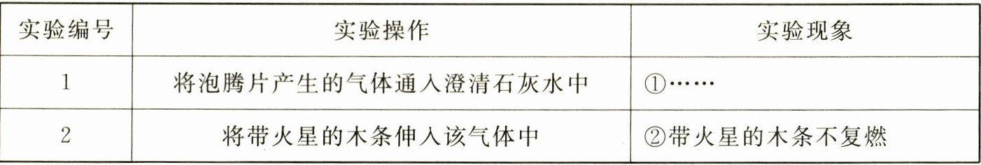 (填“分子”“原子”或“离子”)构成的。(3)“天宫课堂”中,航天员将泡腾片放入蓝色水球中。在失重环境下,泡腾片持续产生气泡,但这些气泡并未上升离开水球,而是始终被水球包裹。某研究小组的同学认为泡腾片产生的气体中可能含有 CO₂、O₂ 中的一种或两种,并进行下列探究活动。