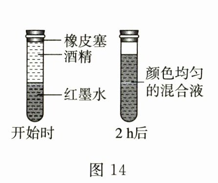 有关。(3)如图 14 所示,先在一支试管中装一半红墨水,再在液面上注满酒精(缓缓注入),加盖密