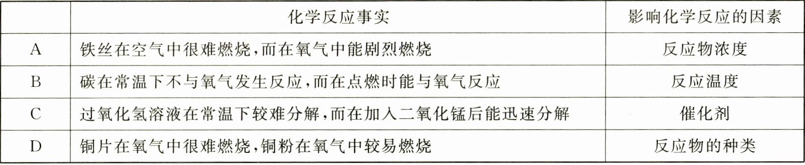 11. 比较、推理是化学学习常用的方法。根据化学反应事实推导出的影响化学反应的因素如下表所示,其中不合理的是(