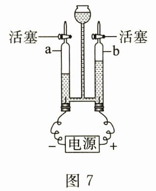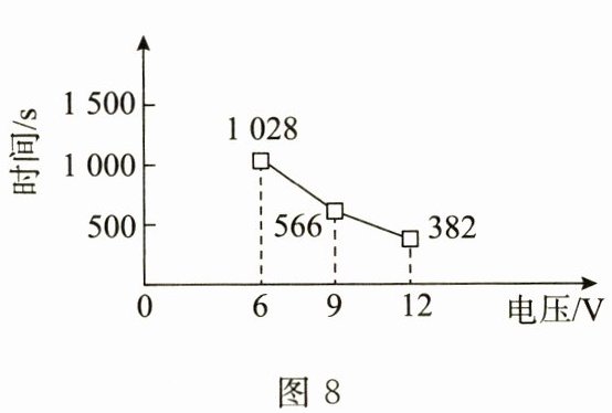 19. 探究不同电压下10%氢氧化钠溶液对电解水速率影响的实验装置如图7所示,多次实验测得生成20mL氢气所需时间如图8所示。下列分析正确的是(