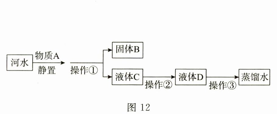 24. 某同学收集到一瓶浑浊的河水,并模拟自来水厂的净水过程,最终制得了蒸馏水。其实验过程如图12所示。