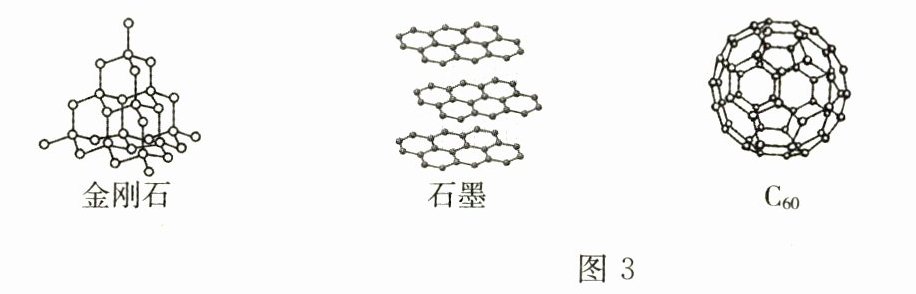 12. 石墨烯是一种二维空间材料,它是由石墨制成的新型碳单质。金刚石、石墨、$C_{60}$和石墨烯的结构示意图如图 3 所示,下列关于这四种物质的说法正确的是(