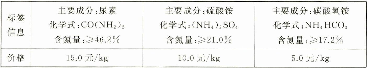 14. 化学小组的同学计划开展“研究化肥对植物生长的影响”的项目式学习活动,他们上网查阅了几种氮肥的资料,并将它们标签上的部分信息和价格记录在下表中。下列说法错误的是(
