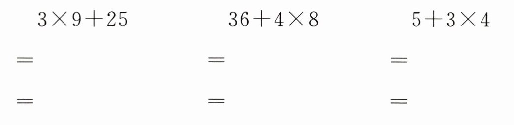 一个算式里,只有加法和乘法,要先算(乘)法,再算(加)法。
