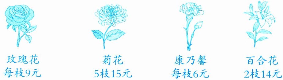(1)买 1 枝玫瑰花和 1 枝百合花,一共需要多少元?