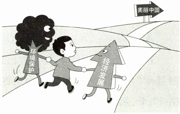 D【解析】漫画中“环境保护”和“经济发展”携手,体现了既要绿水青山,也要金山银山,D正确。A中“必然”说法绝对,错误。我国经济已由高速增长阶段转向高质量发展阶段,B错误。保护环境和经济发展同等重要,C错误。