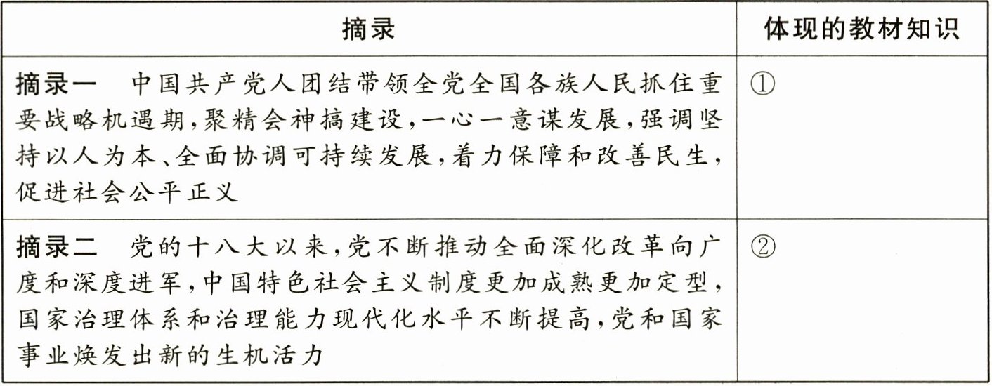 |摘录二 党的十八大以来,党不断推动全面深化改革向广度和深度进军,中国特色社会主义制度更加成熟更加定型,国家治理体系和治理能力现代化水平不断提高,党和国家事业焕发出新的生机活力|②|