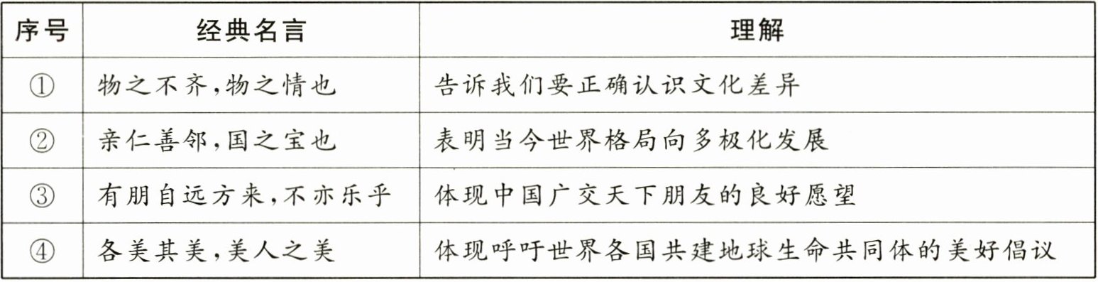 13.国家主席习近平在外交场合经常引经据典表达思想。下面是小刚同学整理的学习笔记,