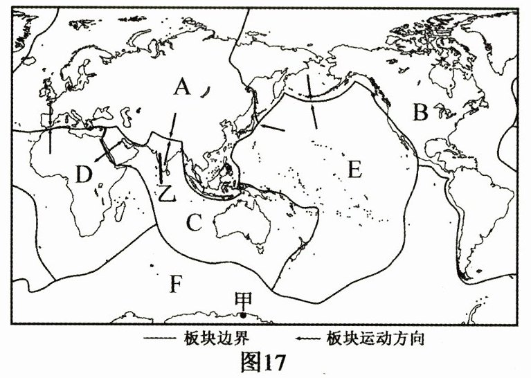 20. 读全球板块分布示意图(图17),完成下列各题。(6分)