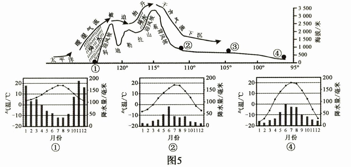 8. 造成①②两个城市之间年降水量差异的主要因素是(