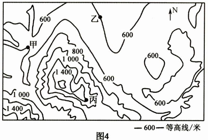 读某区域等高线分布示意图(图 4),完成 9—10 题。