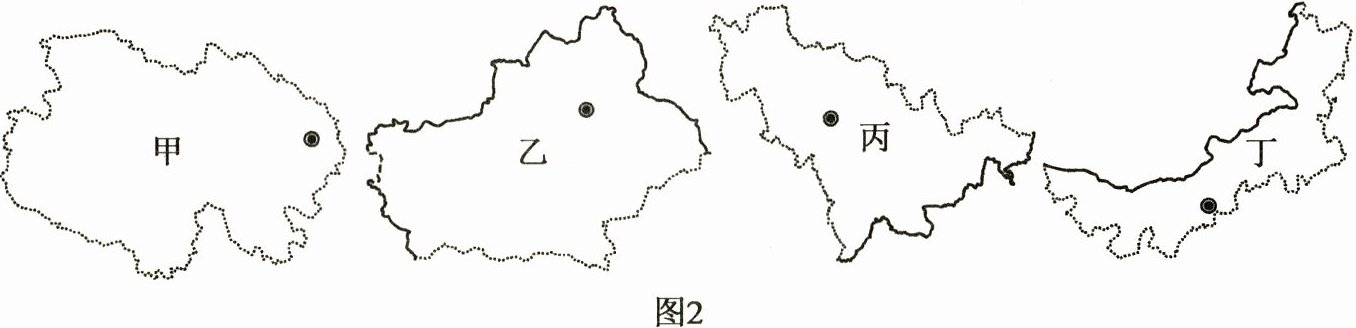 读我国四个省级行政区轮廓示意图(图 2),完成 5—6 题。