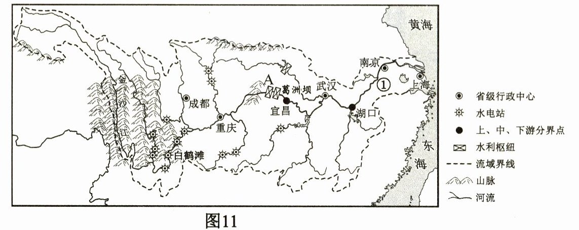 水利枢纽。(1 分)(3)中华鲟洄游经过的①河段的主要生态环境问题是