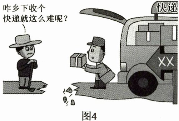 “最后一公里物流”是物流配送的最后一个环节,是指客户通过互联网等电子商务途径购物或者个人寄出包裹,该货物被运输到配送点后,由物流企业通过一定的运输工具将货物从最近的分拣中心送到客户手中,实现门到门的服务。读图 4,完成 9—10 题。