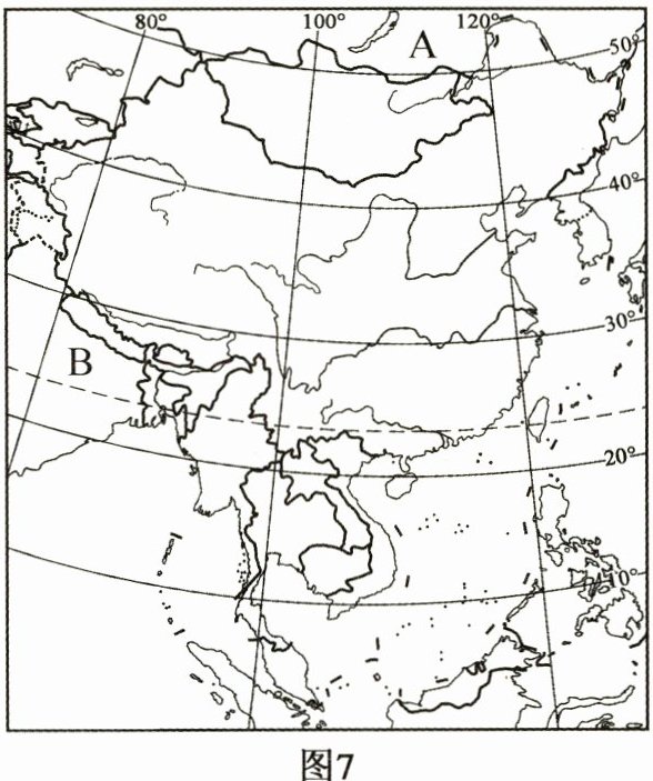 16. 读我国疆域示意图(图 7),完成下列各题。(5 分)