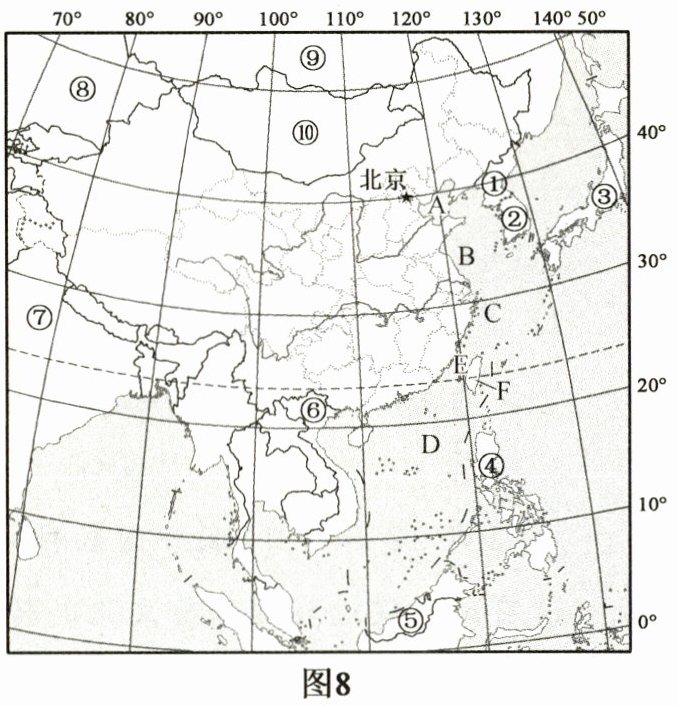 (4)我国海域辽阔,岛屿众多,其中岛屿 F 隔 E