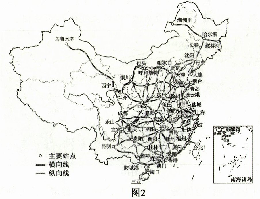 交通强国,铁路先行。图2为我国中长期高速铁路网规划图(2016—2030年)。读图,完成8—9题。