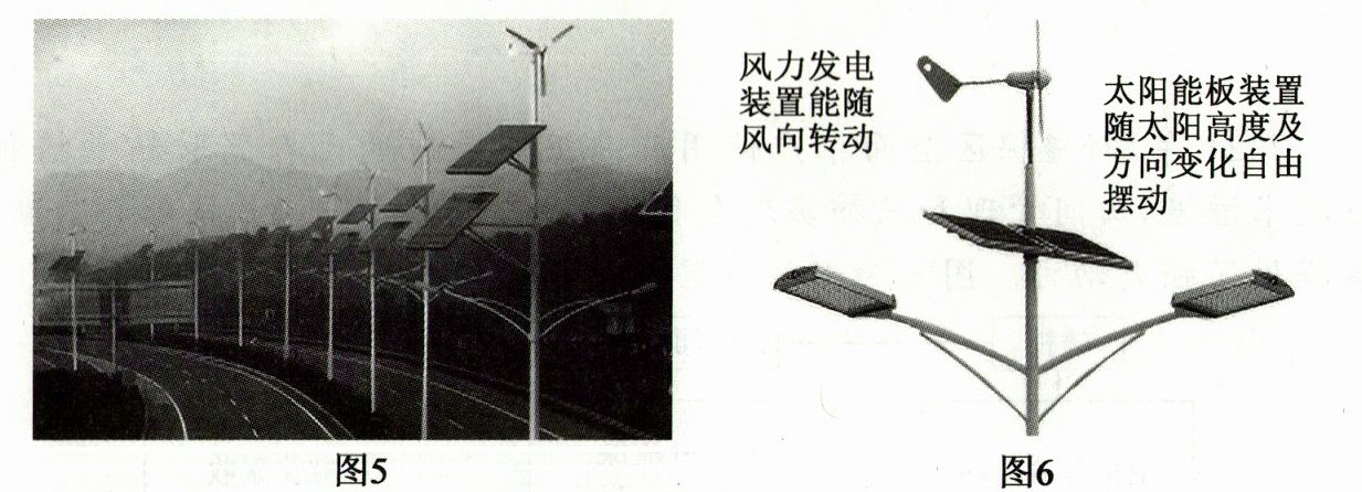 风光互补型智慧路灯是指将风光互补系统技术融入智慧路灯中,该智慧路灯采用风力和太阳能发电,以提供照明能源,全程无需外接电源,可实现电能自给自足。读图5和图6,完成14—15题。