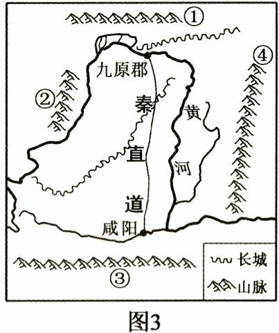 秦直道是与长城、兵马俑相媲美的世界奇迹,始建于公元前 212 年,是我国最早的一条“高速公路”。读图 3,完成 5—6 题。
