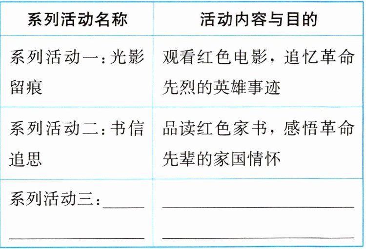 (1)请你参照表格中的示例,再设计一个系列活动。