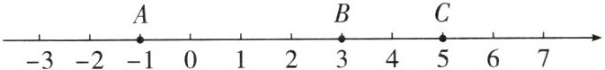2. (2024·成都)如图,已知数轴上 A,B,C 三点对应的数分别为-1,3,5,点 P 为数轴上任意一点,其对应的数为 x. 点 A 与点 P 之间的距离表示为 AP,点 B 与点 P 之间的距离表示为 BP.