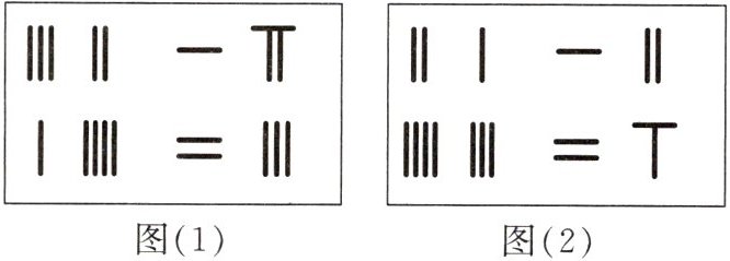 3. (数学文化)如图(1)所示的算筹图用我们现在所熟悉的方程组表示,就是$\begin{cases}3x + 2y = 17,\\x + 4y = 23,\end{cases} $那么如图(2)所示的算筹图用方程组表示,就是