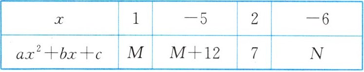 7. (教材 P128 习题 T3 变式)已知多项式$ax^2 + bx + c$中,$a$,$b$,$c$为常数,$x$的取值与多项式对应的值如下表所示.