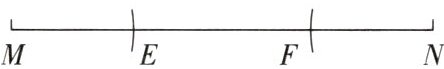 3. 在线段$MN$上,分别以点$M$,$N$为圆心,$c$为半径画弧,交线段$MN于点E$,$F$,如图所示,则线段$MF与NE$的大小关系是(