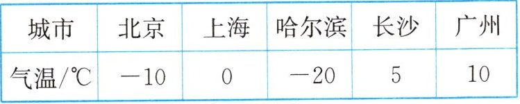 (1)把上述5个城市这一天的最低气温对应的点表示在数轴上;