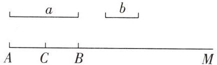 5. 如图,已知线段$a>b$,求作线段$a-b$. 作法:作射线$AM$,在射线$AM上截取AB= a$,在线段$AB上截取BC= b$,那么所求的线段是