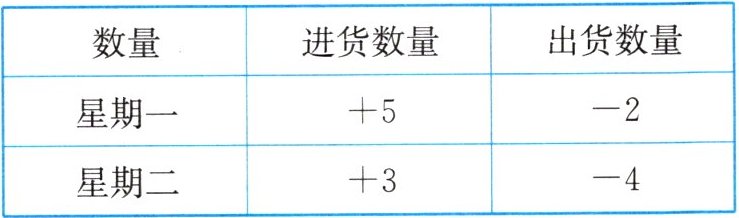 【例2】某建筑工地仓库记录的星期一和星期二的水泥进货和出货数量(单位:t)如下,其中进货为正,出货为负。