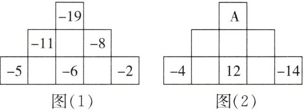 (1)中的规律如下: (-5)+(-6)=-11,(-6)+(-2)=-8,(-11)+(-8)=-19. 由此可以推出图