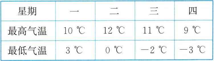 4. 某地一周内前四天每天的最高气温与最低气温如下表, 则这四天中温差最大的是 (