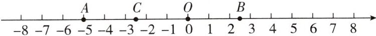 2. 如图,不完整的数轴(单位长度为1)上有三个点$A$,$B$,$C$,若点$A$,$B$表示的数互为相反数,则点$C$对应的数是(