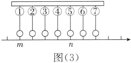 (2) 如图(3),将牛顿摆放在数轴的上方,铁球①与铁球⑤的最低点在数轴上对应的点表示的数分别为m,n。