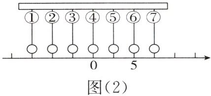 (1) 如图(2),将牛顿摆放在数轴的上方,此时铁球④的最低点在数轴上对应的点表示的数为0,铁球⑥的最低点在数轴上对应的点表示的数为5,求铁球①的最低点在数轴上对应的点表示的数。