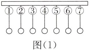 10. (综合与实践)问题情境:图(1)是牛顿摆的示意图,它由7根等距离的细线分别连接一颗相同的小铁球组成。在牛顿摆静止状态下,可将每个小铁球的最低处抽象成点。同学们利用牛顿摆和数轴进行探究。