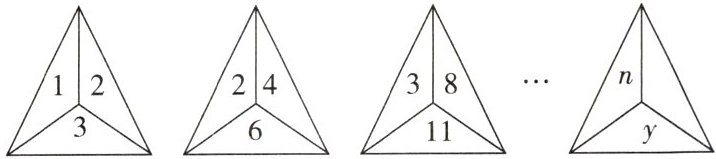 2ⁿ+n 解析:观察各三角形中的三个数可知,左上角三角形的数字规律为1,2,…,n,右上角三角形的数字规律为2,2²,…,2ⁿ,下边三角形的数字规律为1+2,2+2²,…,n+2ⁿ,所以y=2ⁿ+n.