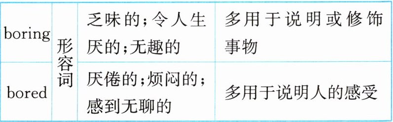 [知识拓展] 以 -ing 结尾的形容词通常说明事物;以 -ed 结尾的形容词通常修饰人。这类形容词常见的还有: