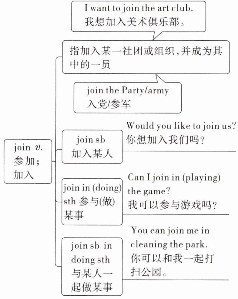 A[join v. 参加;加入] --> B[指加入某一社团或组织,并成为其中的一员]