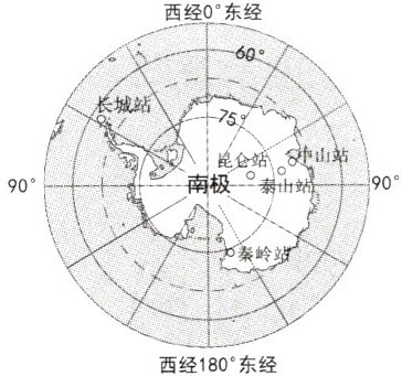 4. 2024 年 2 月 7 日,中国第五个南极考察站——秦岭站开站,填补了中国在南极罗斯海区域的考察空白。秦岭站也是我国首个面向太平洋扇区的考察站。读极地经纬网图,说出秦岭站的经纬度。