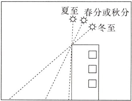 3. 下图示意昆明某居民楼二分二至时的正午太阳高度情况,结合生活经验进行思考。