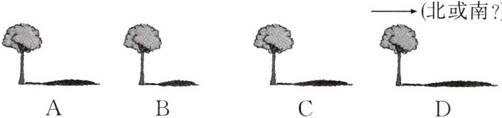 同学们发现,昆明正午树影均朝向______。四图中记录夏至昆明正午树影的是______图。