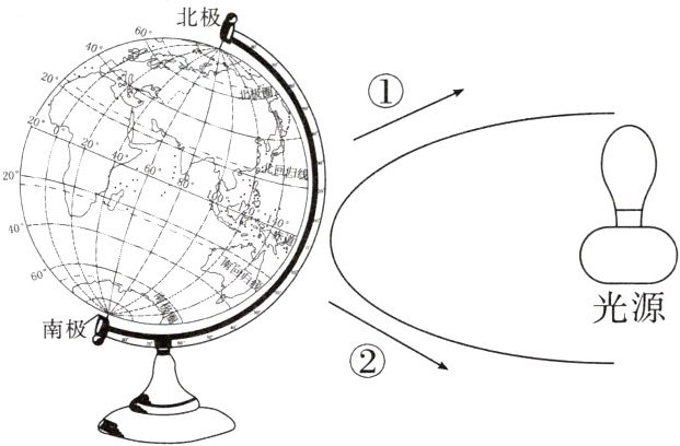 某地理兴趣小组利用地球仪演示地球的运动。读地球运动演示示意图,完成1~2题。