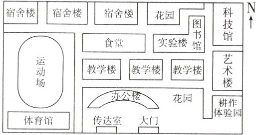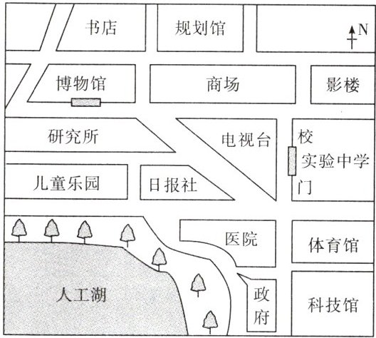 某市实验中学的学生利用周末到博物馆进行社会实践活动。下图为同学们绘制的学校周边区域简图。读图,完成5~6题。