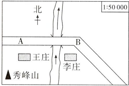 (2)图中王庄位于李庄的______方向。图中小河的流向是______。AB段公路是______走向。